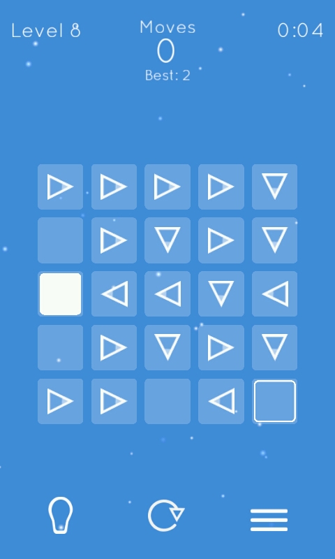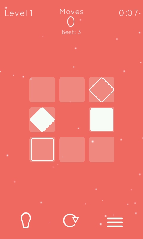 规则虽然简单,但是有些关卡会有改变物块的符号(来自东方的神秘力量)……比如重置符号可以改变物体形状(运动方向也一起改变了哦),箭头可以使方块朝着箭头的方向移动,所以需要开动脑筋才能过关(๑•̀ㅂ•́)و✧