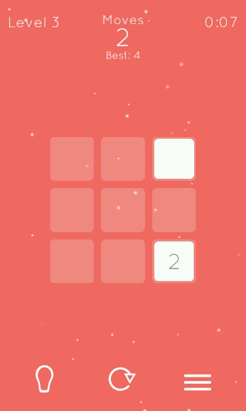 游戏的风格呢清新简单,纯色的背景上闪着点点的白光,偶尔响起的钢琴旋律也使我更加放松,清新的感觉铺面而来,感觉舒适而愉快。