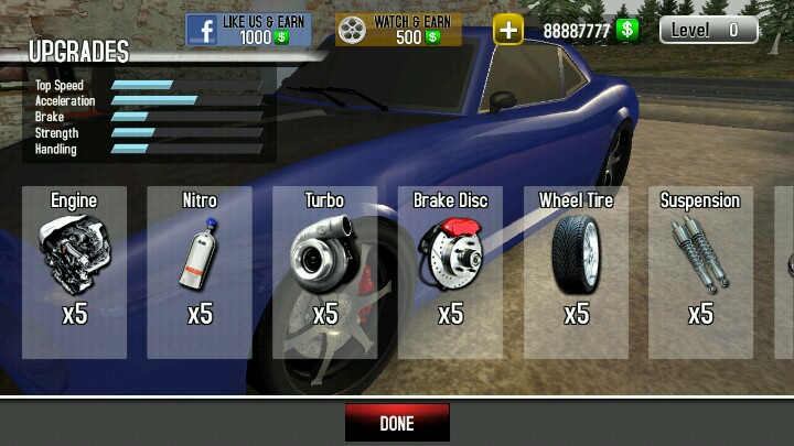 在upgrades页面,有许多的配件可以升级,例如轮胎,涡轮增压器,引擎等等一系列的配件,个人感觉这样的设计蛮好的……