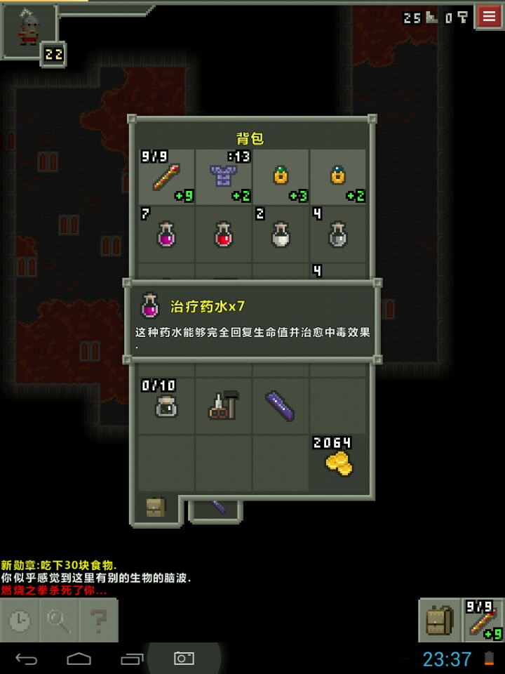 没想到到了最后一层,把绿色的拳头打死了,不知道红色的拳头无视距离,本来是想在个角落种个草会血了。手一抖快多点了几下休息,直接被打一脸(露水瓶已用)。-_-///
