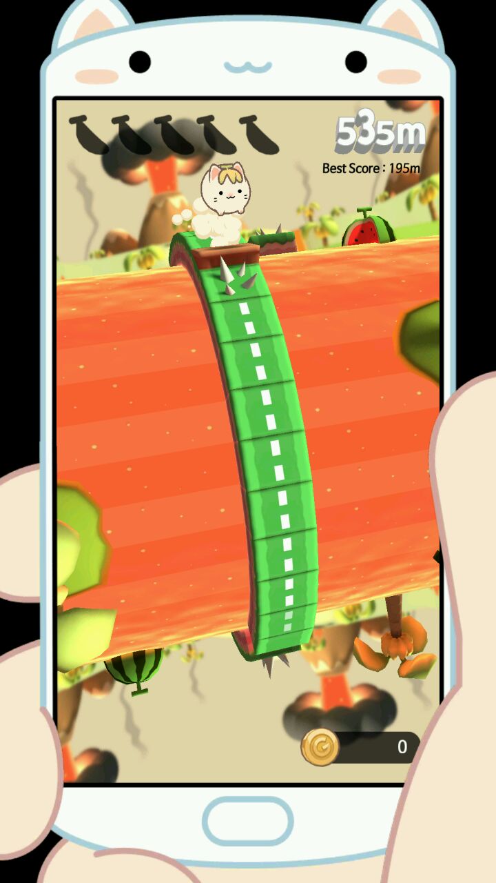 一只很萌很萌哒香蕉猫颠颠的跑着,你需要给它铺好前方的路。